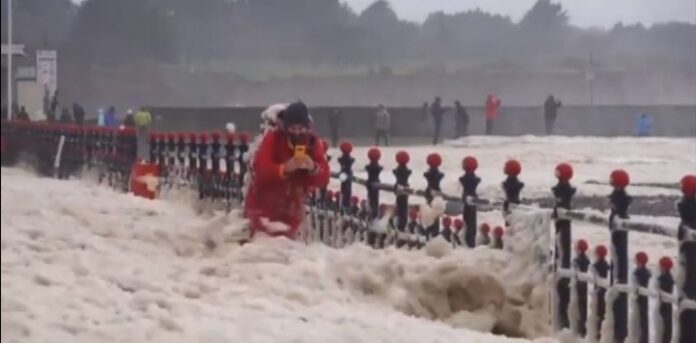 Loše vrijeme i snažni vjetrovi veliki dio pjene nanijeli su na obale grada Bray, južno od Dublina.