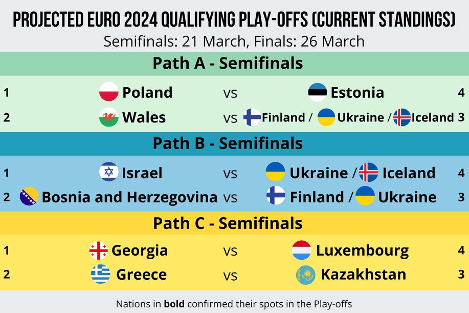 Ukoliko Ukrajina i Island budu dodijeljeni Diviziji B, Ukrajina bi igrala protiv Bosne i Hercegovine, a Island bi igrao protiv Izraela. Dakle, današnjim žrijebom će biti odlučeno hoće li BiH u polufinalu dočekati Finsku ili Ukrajinu.