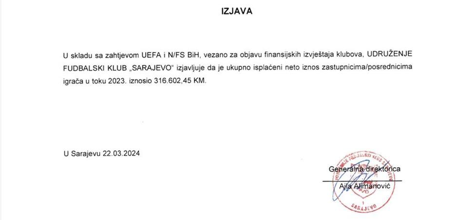 Sarajevo je menadžerima igrača i posrednicima u transferima u 2023. godini isplatilo oko 300.000 KM.