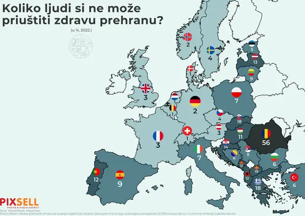 Naime, u 2022. čak 56 posto ukupne populacije u Rumunjskoj si nije moglo priuštiti zdravu prehranu.
