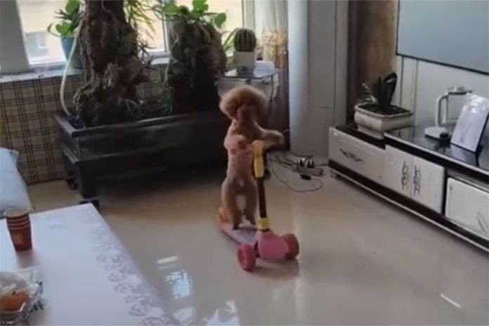 Jedna mala smeđa pudla demonstrirala je svom vlasniku elegantno penjanje na trotinet, baš kao da je malo dijete i postala hit na internetu.