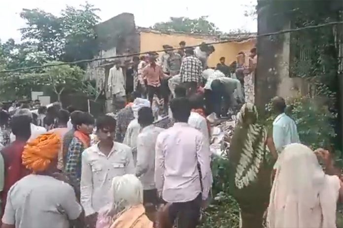 Snimke prikazuju lokalno stanovništvo okupljeno oko mjesta urušavanja dok se dizalicom uklanjaju ruševine. Lokalni mediji izvijestili su da su učenici pohađali nastavu u državnoj školi u Jhalawaru kada se zgrada urušila.