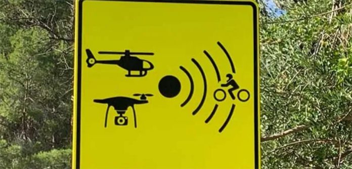 Saobraćajni znak najavljuje da prometne propise nadgledaju dronovi pa čak i helikopteri.