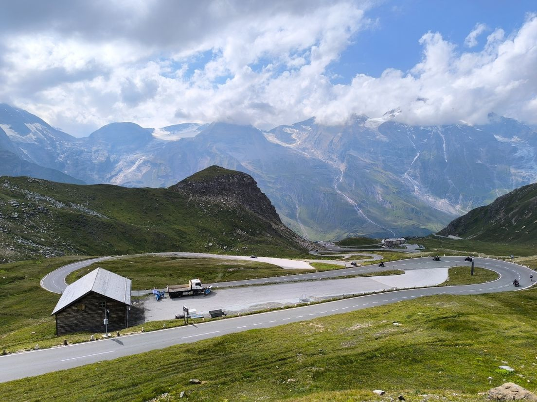 S naše strane cesta je krenula na otprilike 900 metara visine i onda je krenuo praktički „vječni“ uspon. Odmor i obrok smo napravili na najvišoj točki Edelweissspitze, koja se smjestila na 2504 metra. Tu smo imali i zanimljivu situaciju – dolazak djelatnice iz hitne koja nas je upozorila da sklonimo stvari sa stola, jer uskoro slijeće helikopter po ozlijeđenu osobu. Tako da, imali smo i „show“ uživo, i dobro da na elisa nije otpuhala.