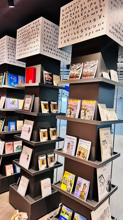 Ovaj jedinstveni prostor nije samo prodajno mjesto, već prava mala oaza za ljubitelje knjige. Police su ispunjene pažljivo biranim naslovima – od klasika svjetske književnosti, preko savremene proze i publicistike, do putopisnih izdanja i poklona koji nose duh Bosne i Hercegovine. Poseban akcenat stavljen je na domaće autore i izdanja koja čitatelja podsjećaju da se najljepše priče često nalaze upravo kod kuće.