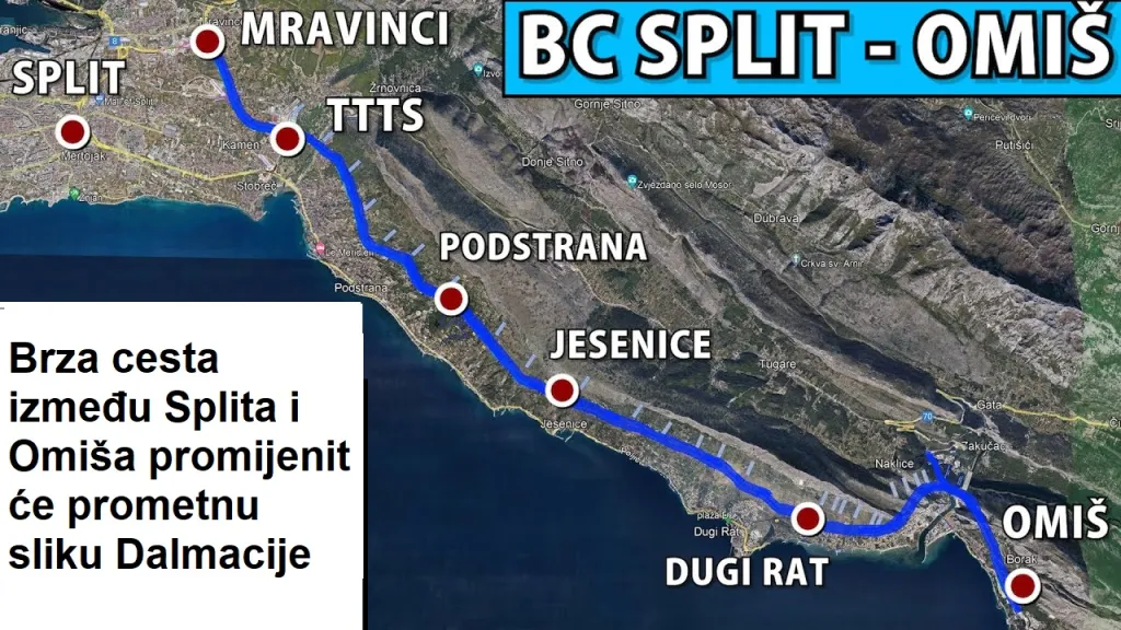 Nova saobraćajnica uključivat će tunele, vijadukte i spojne ceste, a njen glavni cilj je rasteretiti prenapregnutu Jadransku magistralu te osigurati sigurniji i protočniji promet između Splita, Omiša i okolnih naselja.