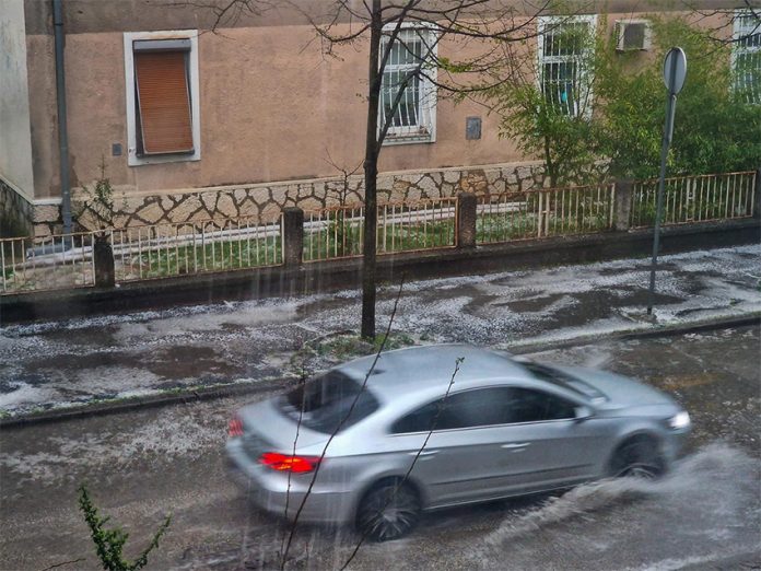 Jako nevriijeme s kišom i tučom pogodilo je danas iza podne Hercegovinu. Ulice Mostara u kratko vrijeme bile su potpuno bijele te je tuča izazvala probleme u prometu.