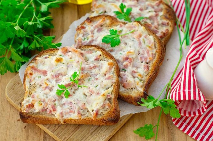 Kruh narežite na šnite željene debljine. Svaku šnitu bogato namažite pripremljenim nadjevom. Sendviče posložite na lim za pečenje i stavite u pećnicu prethodno zagrijanu na 200 stupnjeva. Pecite 10 do 15 minuta, odnosno dok nadjev ne dobije lijepu zlatnožutu boju i sir se ne rastopi.