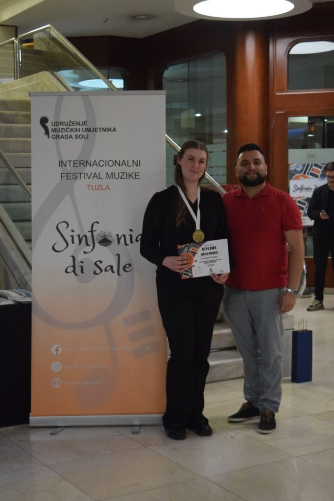 Na prestižnom Internacionalnom festivalu muzike “Sinfonia di sale” u Tuzli, Matea je nastupila u iznimno zahtjevnoj VIII. kategoriji – violina. Svojom interpretacijom i tehničkom preciznošću osvojila je stručni žiri i zaslužila visoka 94,33 boda, čime joj je pripala prestižna I. nagrada.