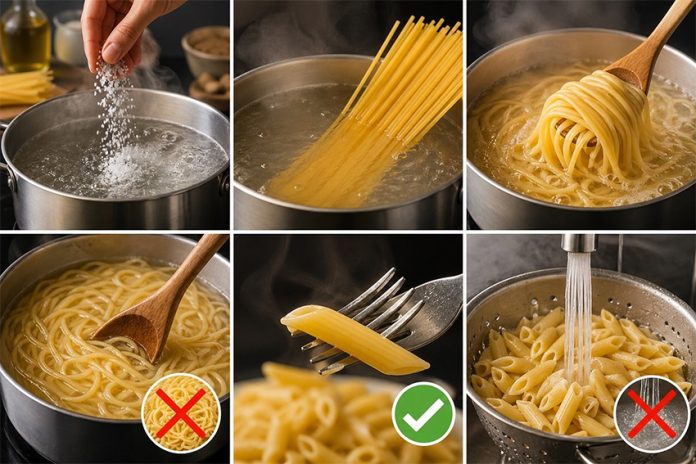 Jedno od osnovnih pravila jeste korištenje dovoljne količine vode, kako bi se tjestenina ravnomjerno skuvala i spriječilo lijepljenje.